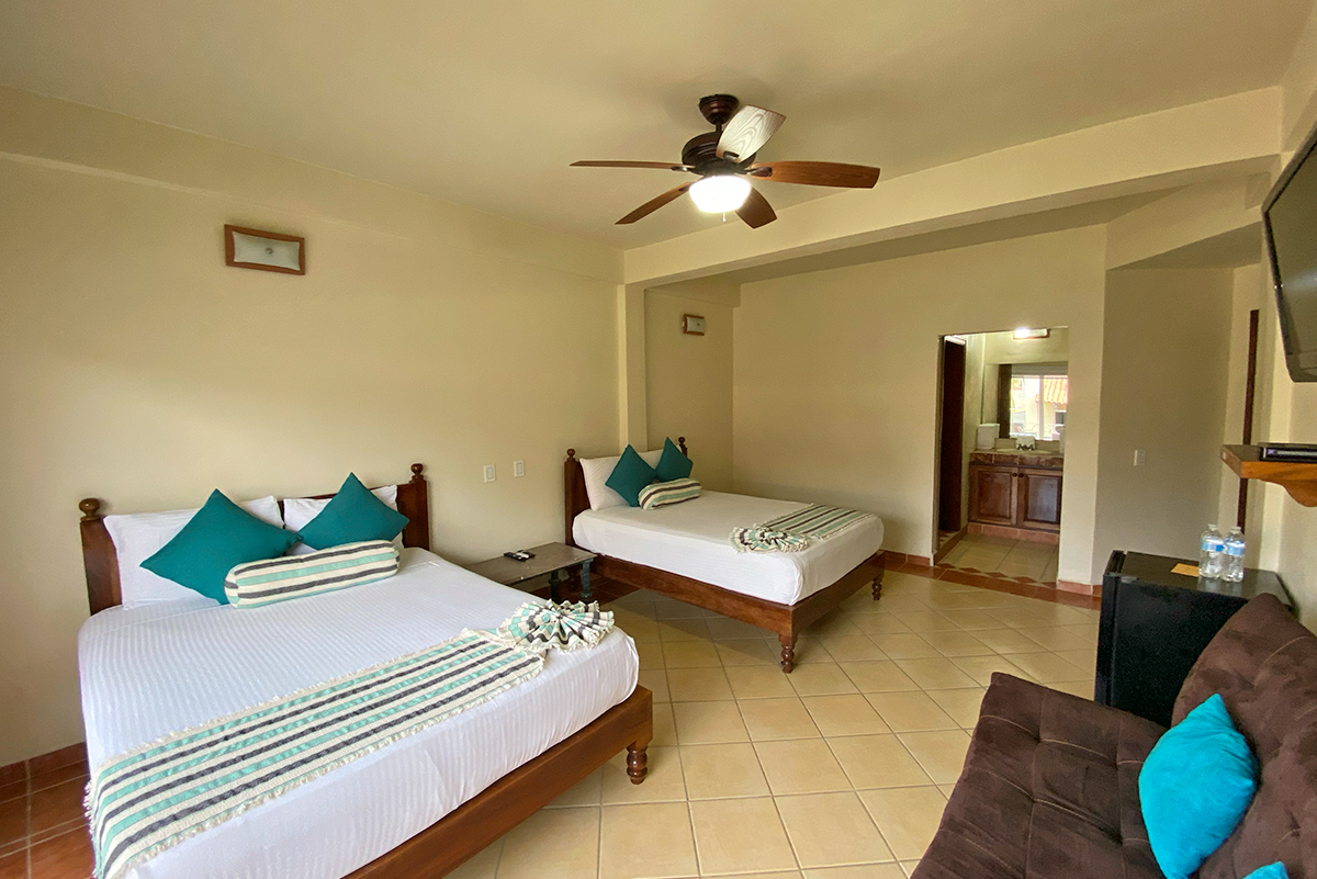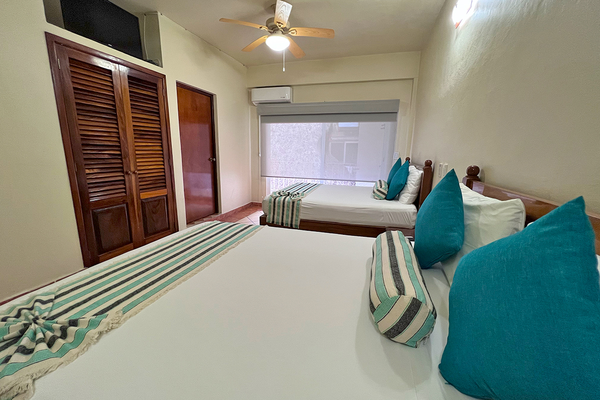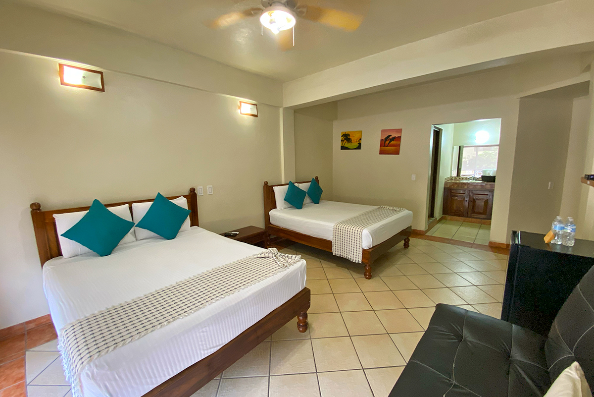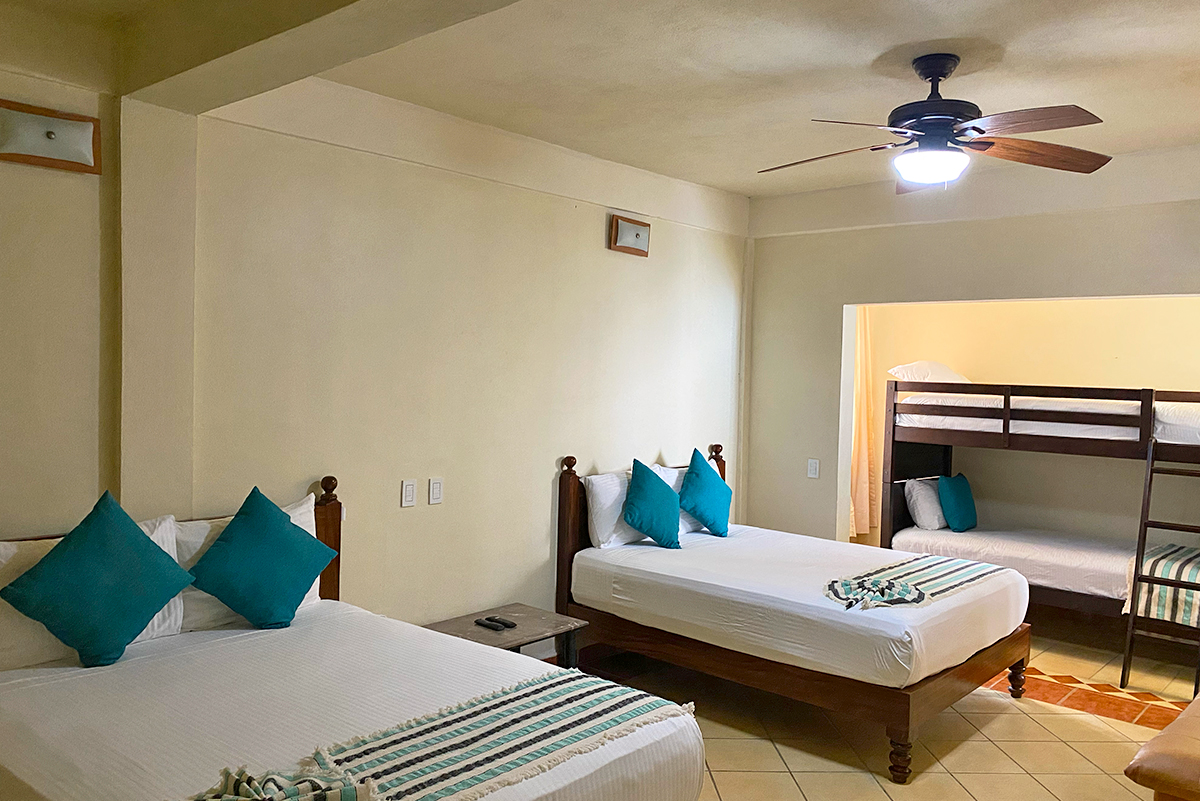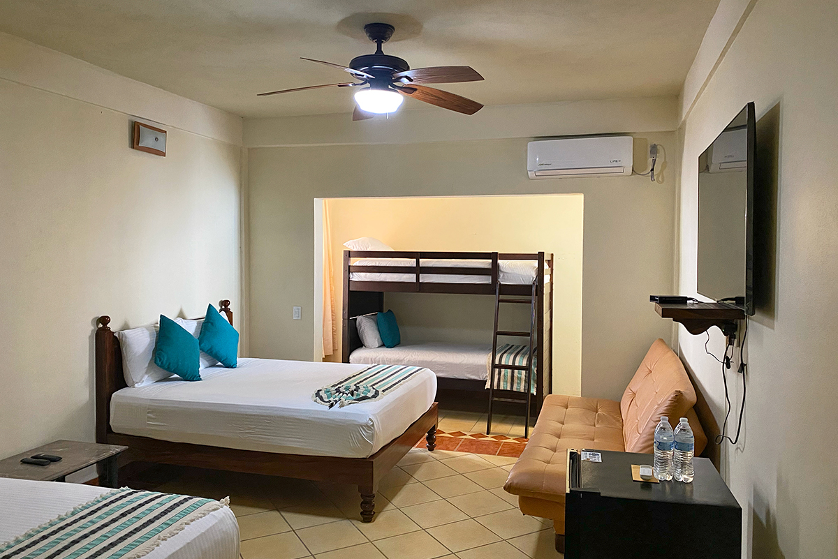 Nuestra habitación doble cuenta con espacio suficiente para hasta (4) personas. Diseñada pensando en la comodidad, es la elección ideal para parejas o amigos que desean compartir su experiencia de viaje sin comprometer el espacio y el confort.